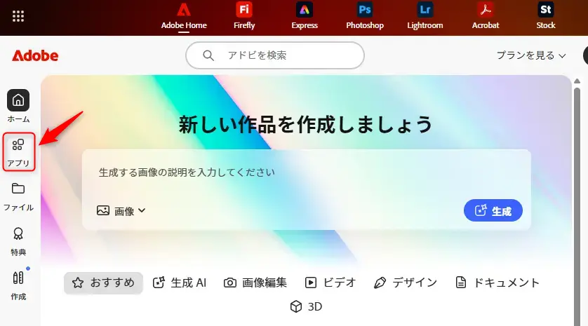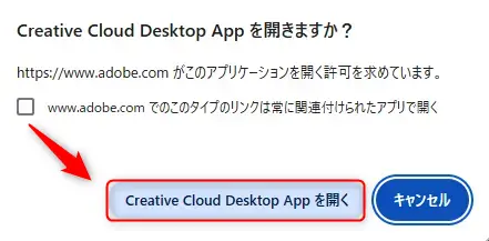 Creative Cloud デスクトップアプリを開くを選択します