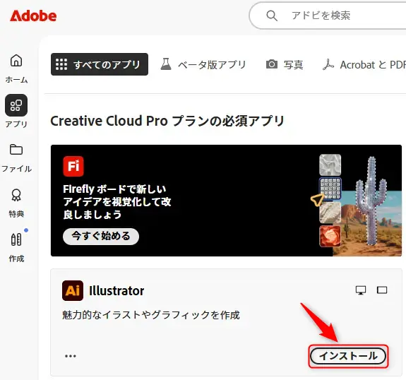 ここからは、Illustratorをインストール4する方法と、現在のパソコンにIllustratorがインストールされているかを確認してみましょう。