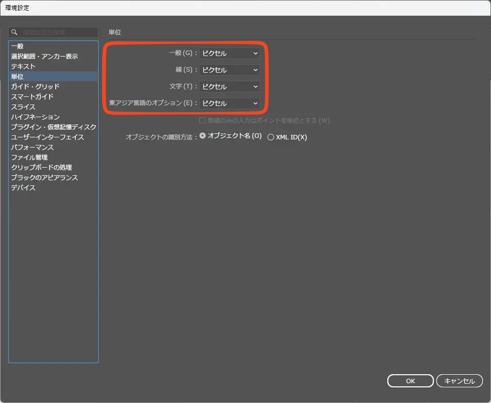 | 単位 | ミリメートル/ピクセルなどの表示単位 |