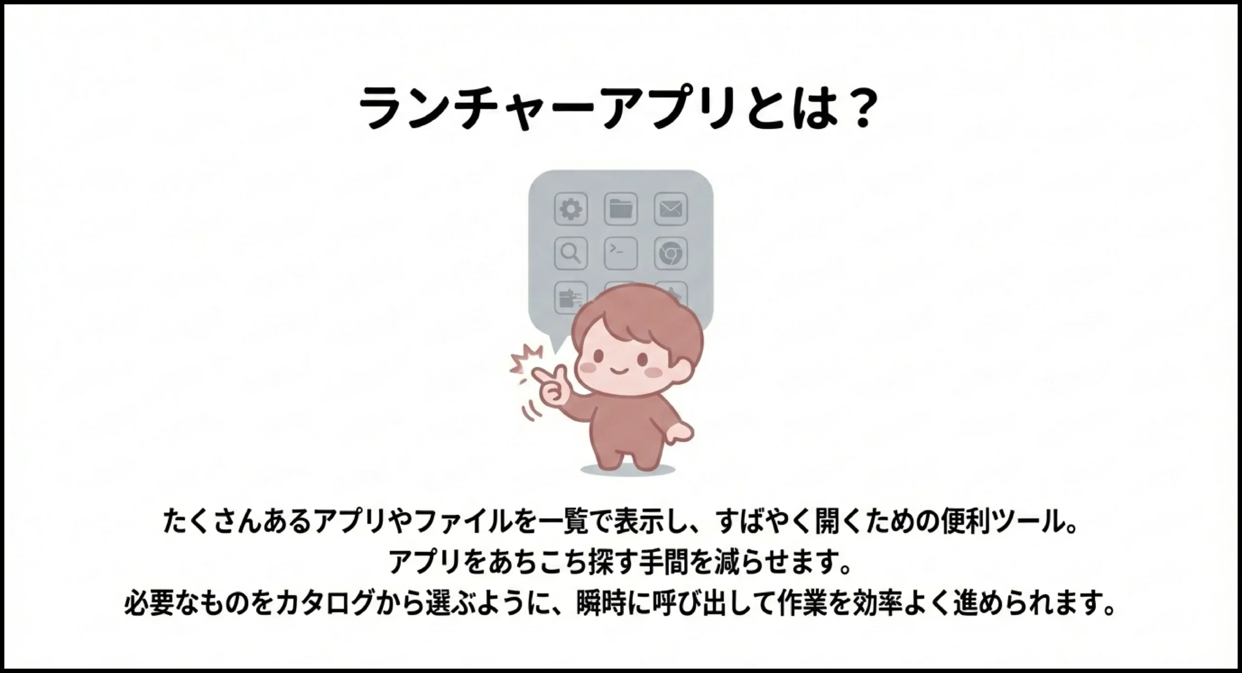 ちなみに、WindowsでもMacでも「ランチャーアプリ8」を使えば