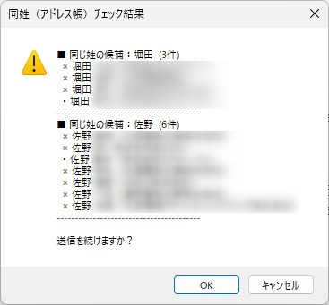 '   ・宛先/CC/BCC に同姓が複数いる場合に警告を出す