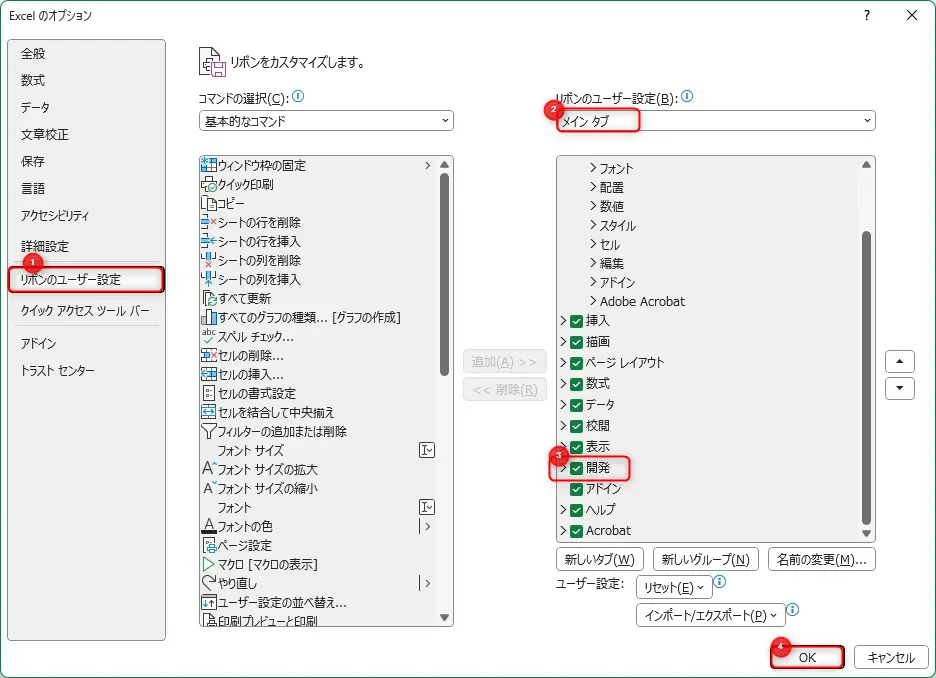 Step1:開発タブを表示してVBE起動する(初回のみ設定)