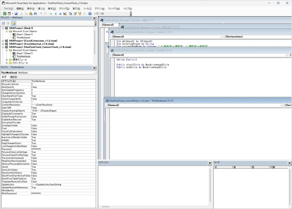 • Excelの[開発]タブ → [Visual Basic]を開くと出てくる、あのウィンドウです。
