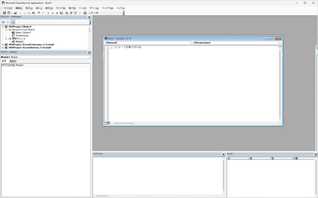 基本的にコードは「標準モジュール」に貼り付ければOKです。